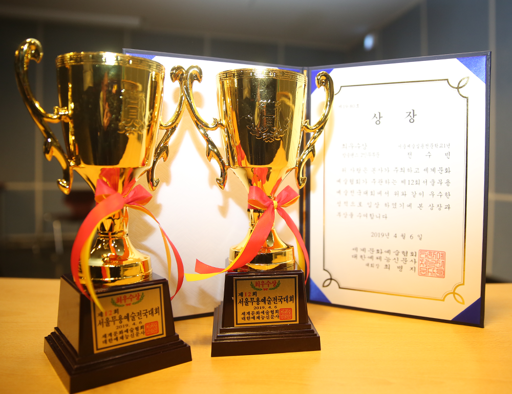 무용예술계열 강정모 학생과 전수빈 학생이 세계문화예술협회 에서 주관한 제 12회 서울무용전국대회에서 실용무용 2인 부문 최우수상을 수상했습니다! 학생들의 수상 소식을 듣고 만나 간단한 인터뷰를 진행했는데요! 대회 준비 비하인드 스토리와 학생 활동에 대한 이야기를 만나볼까요?