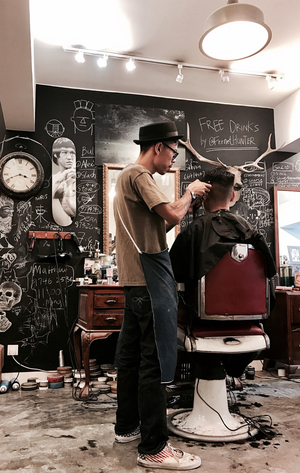 클래식한 인테리어에 편안해 보이는 의자, 전면을 가득 채운 거울까지. 미용실과 다를게 없어 보이는데요. 미용실과 가장 큰 차이점이 있다면 고객은 여성이 아닌 남성이라는 것! 남성 전용 이용원을 현대적으로 재탄생시킨 ‘바버샵’이랍니다. 의자 옆에는 갖가지 면도 용품이 놓여 있는데요. 면도기, 볼, 브러쉬 등 약 30여 가지의 쉐이빙 용품이 있으며 여성용 미용 도구 못지 않게 종류가 다양하답니다.