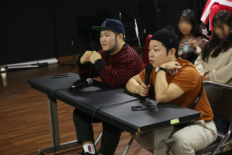 실용음악계열 학생들은 길구봉구 교강사의 보컬 코칭을 듣기 위하여 몇 주 전부터 함께 합주하고, 곡 작업, 보컬 연습을 하며 이 시간만을 기다렸습니다. 매 강의 때마다 학생들의 노래를 듣고, 학생들이 목이 상하지 않는 더 나은 방법으로 더 좋은 소리를 낼 수 있는 방법을 알려주고 계시는 만큼 학생들의 실력은 나날이 높아지고 있습니다. 특히, 길구봉구 교강사는 학생 한 명 한 명을 기억하면서 '그 때 보다 목소리가 더 나아졌다.'는 등의 칭찬을 아끼지 않고 계신답니다! 특히, 길구봉구 교강사의 강의가 좋은 점은 실용음악계열에서 학생들을 가르치고 계시는 길구봉구 교강사는 비투비, 오마이걸, B1A4 등 많은 가수들의 보컬 트레이너로 활동한 바 있고, 이적, 박효신, 백지영 등의 코러스에 참여하며 화려한 경력과 경험을 가지고 계시기에 학생들에게도 본인들의 풍부한 경험을 바탕으로 실질적인 팁을 전해주고 있다는 것입니다!