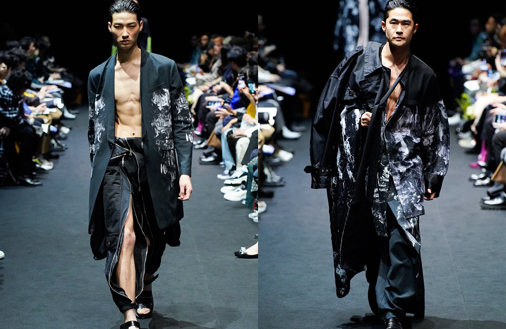 젠더리스적 실험적인 룩을 시도하는 막시제이의 이재형 디자이너. 이번 2020 S/S 컬렉션에서 ‘밤’을 연상시키는 다양한 컬러를 보여주었고, 레이스, 시스루를 많이 사용한 것을 확인할 수 있었습니다. 이번 컬렉션에서 막시제이는 '밤'을 컨셉으로 컬렉션을 전개했는데요, 특유의 활기차고 과감한 해석을 통해 밤을 표현했습니다. 맨즈웨어를 바탕으로 특유의 컬러 믹스 매치, 과감하고 다양하게 연출한 텍스타일 등을 가미해 묵직한 실루엣부터 파격적인 형태의 테크 웨어를 선보였답니다. 막시제이는 특유의 볼드한 실루엣이 담긴 젠더리스적인 룩을 통해서 새로운 하이패션 세계관을 제시했습니다. 또한, 다양한 소재를 사용했는데요, 은은한 광택이 감도는 나일론 패브릭을 사용해 젠더리스룩을 완성했고, 망사, 시폰 등 재미있는 소재 활용을 통하여 막시제이만의 매력을 선보인 컬렉션이었습니다.