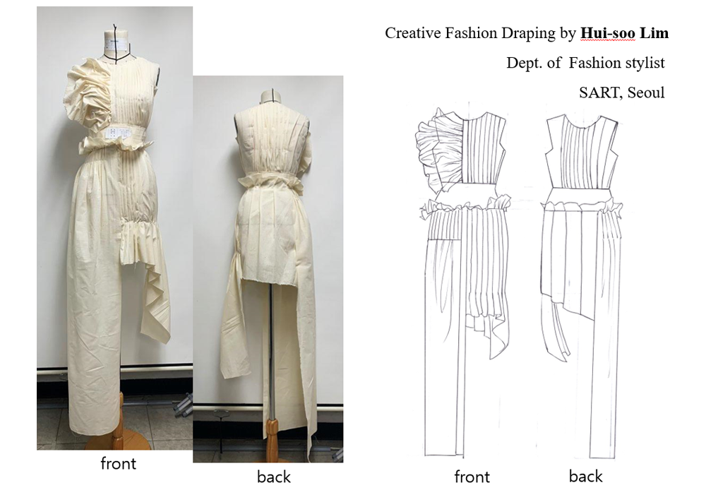 서울예술실용전문학교 패션디자인과정에서는 실무 중심의 커리큘럼을 바탕으로 수업이 진행되고 있습니다. 학생들이 직접 옷을 드로잉하고 드레이핑으로 옮기는 작업과정을 진행했는데요, 오늘은 그 중 1학년 학생들의 드레이핑 우수 작품을 소개해드리겠습니다.