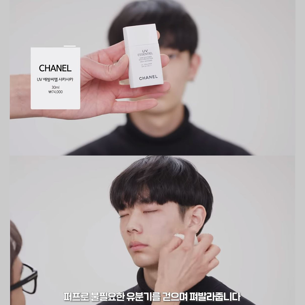 6. 샤넬 UV 에썅씨엘 사카샤카 (74,000원) 썬크림을 꼼꼼하게 발라줍니다. 퍼프로 불필요한 유분기를 덜어냅니다.