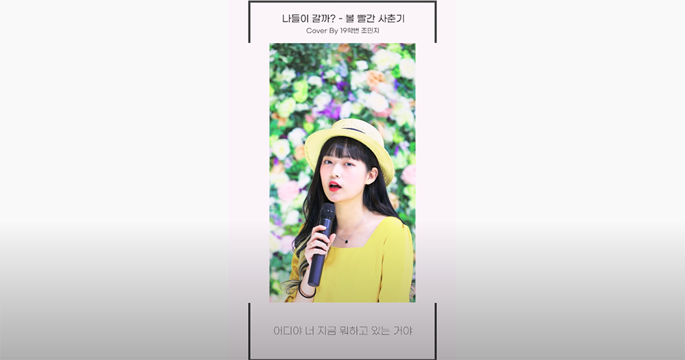 작년에 발매한 볼빨간 사춘기의 봄 저격 앨범 '사춘기집1 꽃기운'의 트랙리스트에 실린 '나들이 갈까'. 이번 곡은 전 멤버였던 우지윤이 작사 작곡에 참여했던 곡인데요, 우지윤은 벚꽃을 보러 나가고 싶다는 마음을 담았다고 전한 바 있습니다. 본교 실용음악과정 19학번 조민지 학생은 본인 만의 색깔을 담아 봄의 설레는 기운을 살려 이번 곡을 해석했답니다!