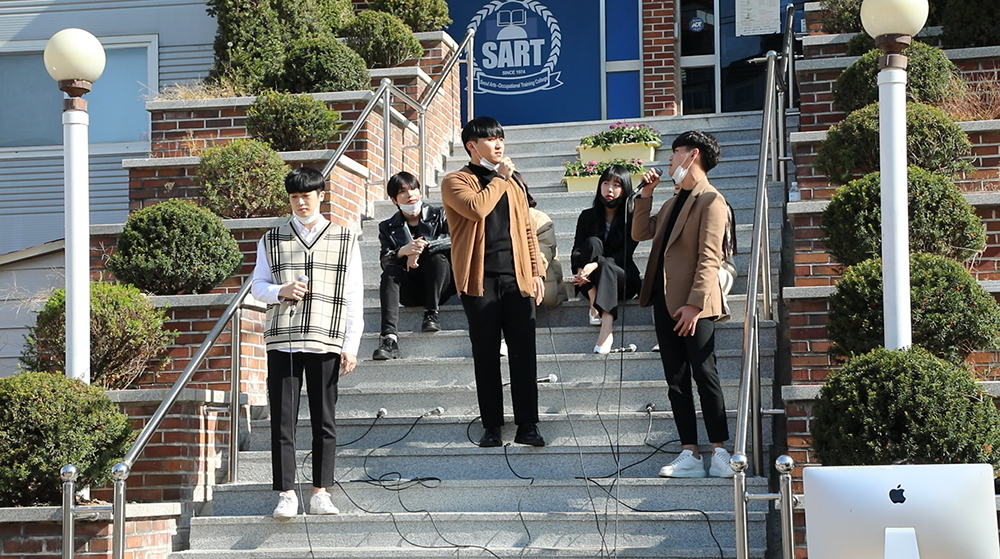서울예술실용전문학교는 학생들이 재미있게 즐길 수 있는 행사들이 많기로 유명한데요! 올해는 행사들이 취소되면서 학생들에겐 아쉬움도 컸을 거라 생각합니다. 하지만 이번 실용음악계열 학생들이 준비한 계단 라이브를 통해서 캠퍼스에도 활기가 돌았답니다! 지나가는 학생들이 자연스럽게 버스킹을 즐기고 있는 모습을 볼 수 있었습니다. 앞으로도 실용음악계열에서 진행되는 다양한 공연들을 기대해주세요 :-)