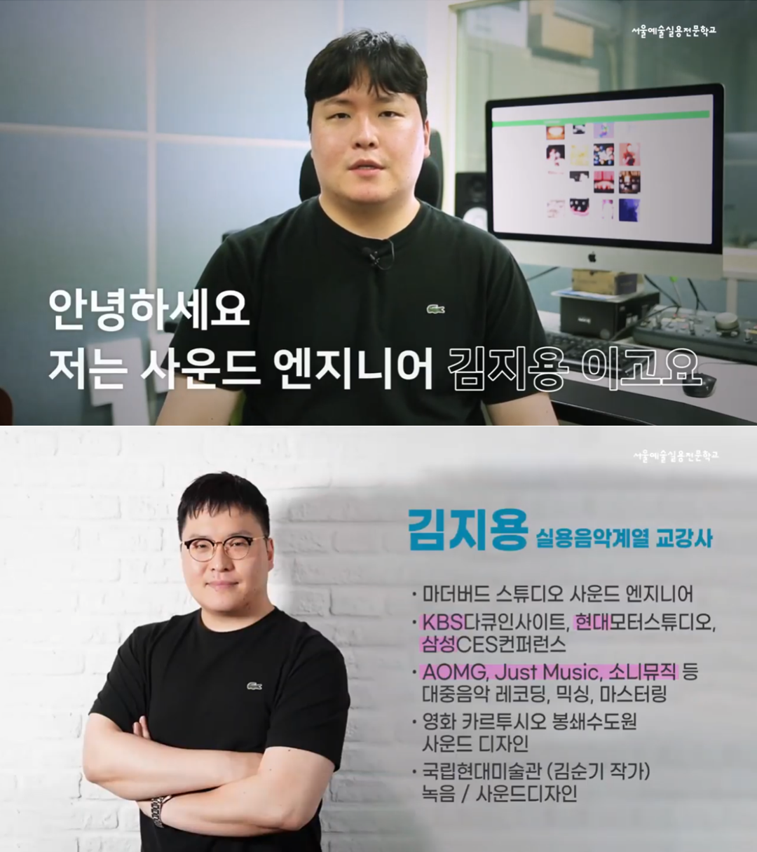안녕하세요. 저는 사운드 엔지니어 김지용 이고요. 저는 청담동에 소재한 마더버드 스튜디오에서 사운드 엔지니어로 일하고 있습니다.