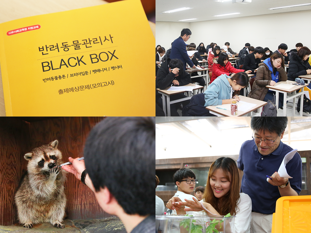 현장 전문가 강사진이 본 강의 외에도 자격증 취득을 위한 무료 강좌도 진행하고 있다. 전 서울대공원 동물원장을 역임한 교수가 학생들을 직접 지도하며 축산 기능사 자격증 취득 과정을 도왔다.