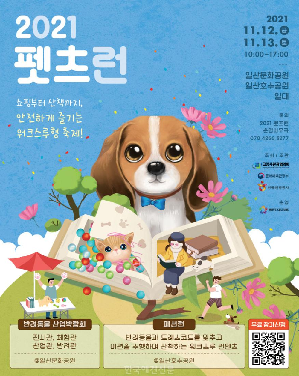 고양시관광협의회가 11월 12일부터 13일까지 이틀간 일산문화공원, 일산호수공원 일대에서 ‘2021 펫츠런’을 개최합니다. 고양시관광협의회가 주최하고 문화체육관광부와 한국관광공사가 공동주관하는 2021 펫츠런은 ‘반려동물 산업박람회’, ‘패션런’ 등 반려인과 반려동물을 위한 프로그램으로 구성되어 있는데요. 서울예술실용전문학교 반려동물계열이 펫츠런 행사에 참여하게 되었습니다. 현장에서 본교 재학생들은 강아지들의 간단한 산책 훈련을 지도하고 호수공원을 산책할 예정인데요. 반려동물 산업박람회는 반려동물과 쇼핑하고 함께 추억을 남길 수 있는 공간이며 전시관, 산업관, 체험관, 반려관으로 이루어져 있어 기대를 모으고 있습니다. 이밖에도 사료&간식, 의류, 리빙, 산책용품 등 30개 이상 부스가 참여하여 다양한 제품과 서비스를 만나볼 수 있으니 반려동물을 키우시는 분들이라면 꼭 참여하면 좋겠죠!