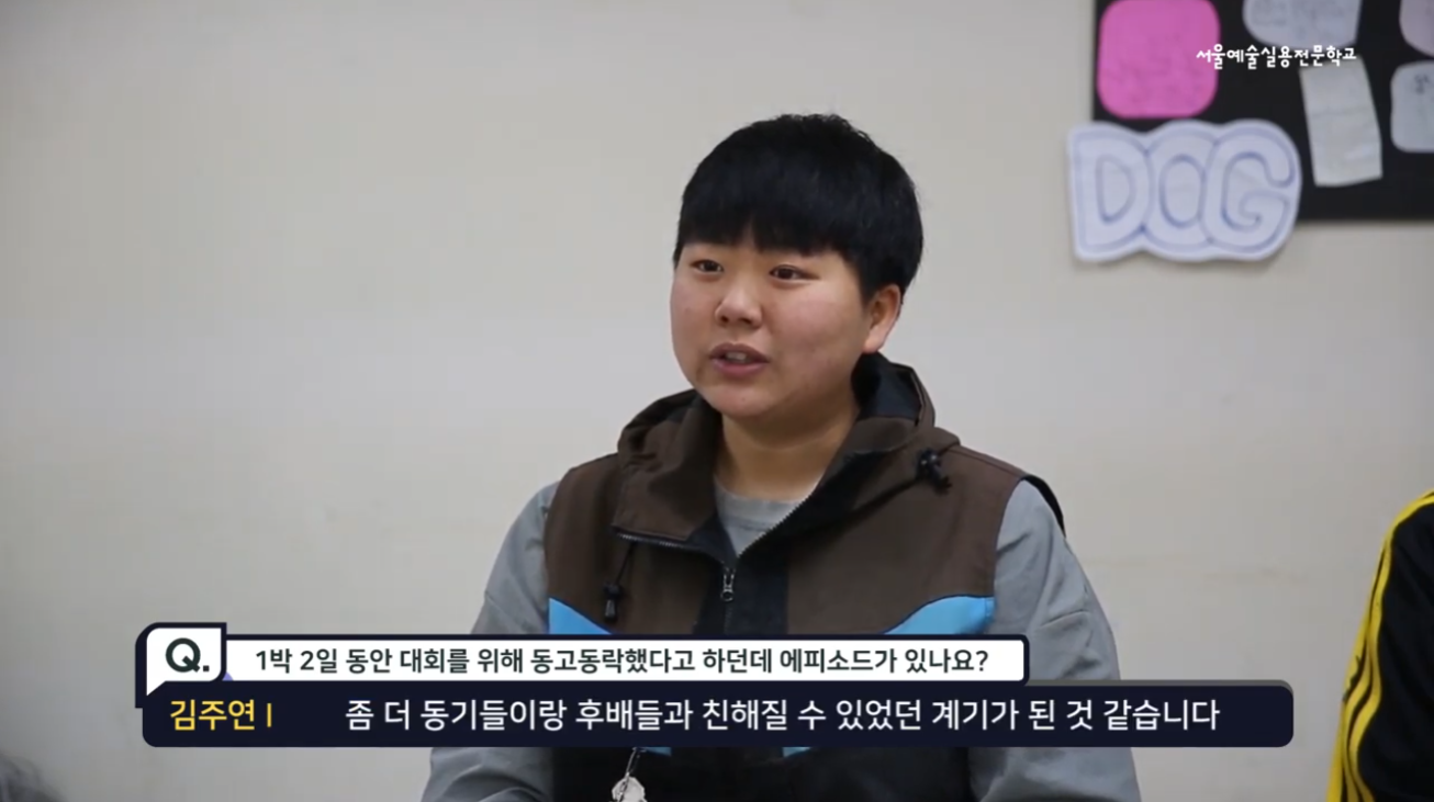 박지아 : 대외는 1박 2일이었지만 대회 준비 기간이 길었고 그만큼 또 서로가 정이 들고 그랬던 것 같고 대회 끝나고 나니가 되게 큰 추억이 된 것 같습니다.