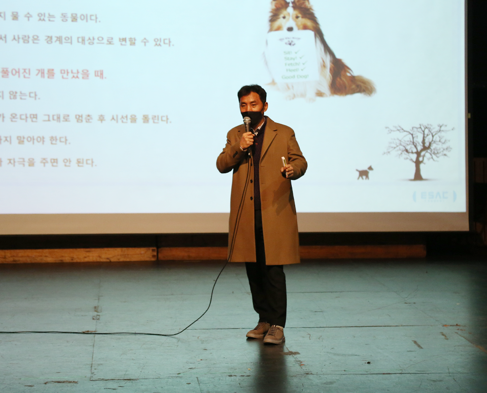 특강을 통해 반려견과 함께 산책을 할 때 주의해야 하는 점과 최근 이슈가 되고 있는 입마게 착용 등에 대해 이야기를 나누어봤는데요. 이찬종 소장은 반려견 마다 각기 다른 특성을 가지고 있기 때문에 이를 먼저 파악하고 적용하는 것이 중요하다고 강조했습니다.