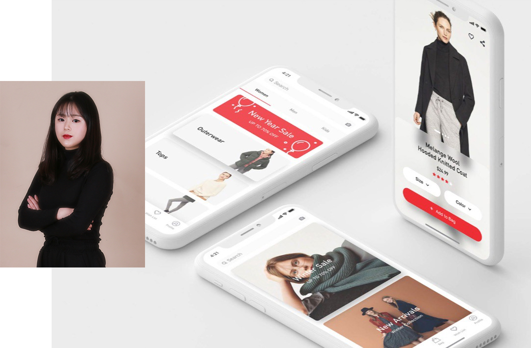 이0지 학생이 취엄한 (주)아우라제이는 온라인 쇼핑몰로 해외 바잉을 통해 명품을 판매하고 있는 곳으로서, 아웃소싱없이 상품의 선별, 수입, 유통까지 한 회사에서 책임지고 있는 탄탄한 기업입니다. 이0지 학생은 웹디자이너로서 UX/UI 디자인을 담당하고 있는데요. 쇼핑몰에서 판매하는 상품들이 고객이 마치 눈앞에서 쇼핑을 즐기는 것과 같은 경험을 주기 위해 사진을 선별하고 화면에 배치하는 것, 그리고 구매를 위한 프로세스를 쉽게 느껴지게 하기 위해 웹사이트 디자인을 도맡아 하고 있습니다.