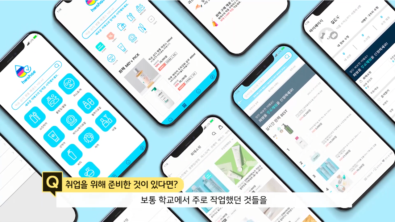 취업을 위해 학교에서 작업한 모든 작품들을 포트폴리오에 담았다는데요. 교강사님의 도움을 받아 구성이나 장점을 잘 어필할 수 있는 방법을 찾을 수 있었으며, 또한 공모전 준비 등을 하면서 분야를 다양하게 배운 덕분에 포트폴리오에 채울 내용이 많았다고 합니다.