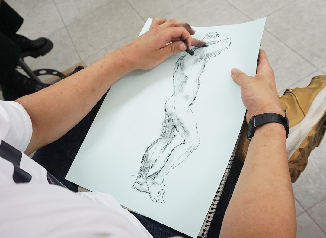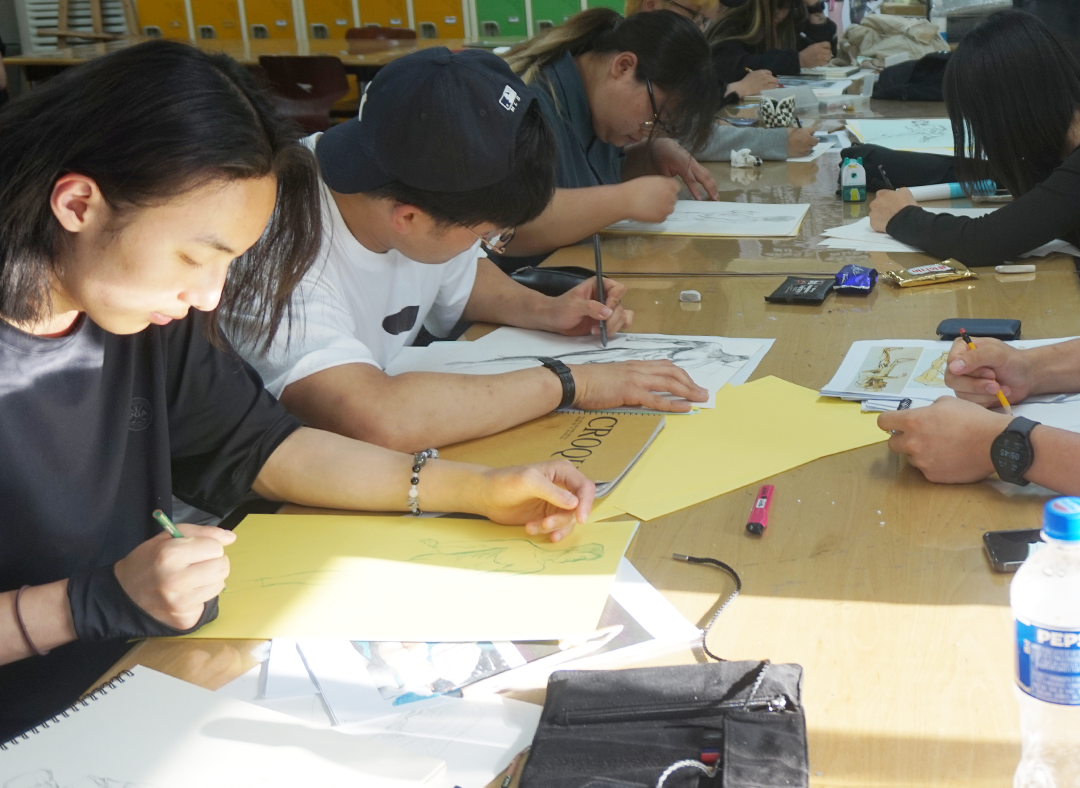 컴퓨터로 작업을 많이 하는 시대지만 크로키는 모든 학생들에게 가장 기본이 되는 학습이기 때문에 본교에서는 모델을 섭외해 꾸준히 학생들에게 누드 크로키 수업을 진행하고 있는데요. 짧은 시간에 빠르게 인체의 특징과 동작을 잡아내야 하는 크로키는 제한된 시간 내에 관찰하고 해석해 최대한 표현해야 하기 때문에 학생들은 더욱 집중하여 수업에 임하고 있습니다.