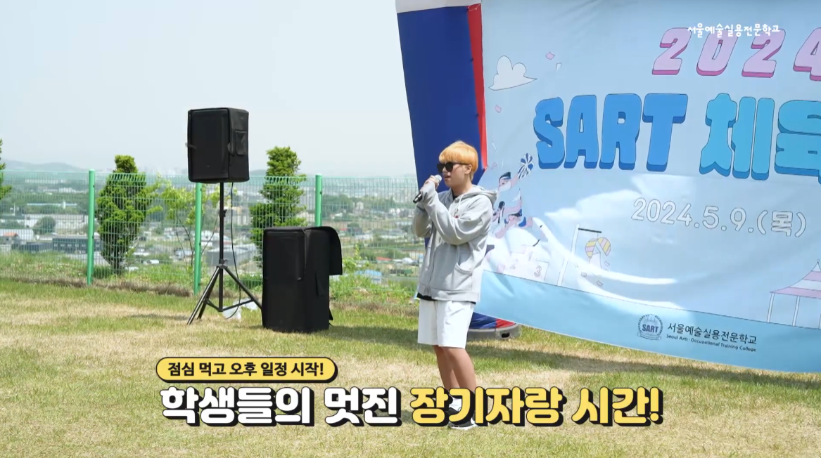 점심 식사 후 시작된 SART 체육대회의 꽃 장기자랑! 올해 특히 많은 친구들이 자신의 끼를 보여주었는데요. 디자인예술계열에서는 발라드를, 패션계열에서는 댄스와 랩을, 뷰티예술계열과 반려동물계열에서는 K-POP 메들리 댄스를 보여주었습니다.