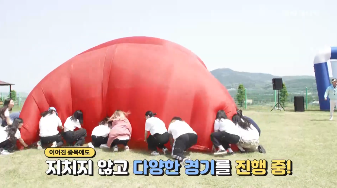 간단한 준비운동 후 명량 운동회가 진행되었습니다. 흑팀과 백팀으로 나눠서 2팀이 경쟁했는데요. 타 계열과 함께 게임을 하면서 서로 친해지는 시간이 되었습니다. 큰에어볼을 굴리는 게임부터 중간 중간 학생들의 깨알같은 장기자랑도 이루어졌습니다.
