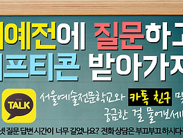 Event 썸네일형 리스트형 수험생 이벤트 빕스, 영화, 투썸 다 쏜다! 서울예술실용전문학교 수험생 이벤트!오구오구 수고했어♥이제, 네 마음대로 살아서예전이 다 쏠게!마음도 가볍게 주머니도 가볍게수험생 이벤트 참여 고고싱! 대상 : 고3(수험번호 작성 필수)기간 : 11월 22일 ~ 12월 11일발표 : 12월 12일상품 : 1등(빕스 외식 교환권), 2등(메가박스 러브 콤보), 3등(투썸 케이크) >>이벤트 참가 바로가기 서울예술실용전문학교 고3 간식 이벤트! 서울예술실용전문학교 간식이벤트!고3 응원 간식이벤트에 1등으로 당점된금호고등학교 조영민 학생 :D이벤트 현장을 생생하게 담아보았는데요!멀고도 먼 양천시까지 피자를 들고고3 학생들을 빠샤빠샤 응원하러서울예술실용전문학교가 찾아갔답니다! 멀고도 멀었던 양천시 ㅠㅠㅠ찾고 찾아 금호고등학교 조영민 학생이 있는3학년 2반으로 향했는데요!평소 그렇게 패셔니스타라고 하던데!페이스북에서는 이미 알려진 일명 페북스타 ★★★실제로 패션 센스가 너무너무 궁금하기도 하다는!서울예술실용전문학교 간식 이벤트 당첨후기도 재미있게 남겨준다니 기대로 두근세근! 짜짜짜짜짜짠 !!!!피자가 도착했답니다!학생들이 넉넉하게 먹을 수 있도록서울예술실용전문학교에서는 가득가득 음료까지챙겨서 학생들에게 전달했는데요!환호성 소리가 북적북적!!! 피자피.. 서울예술실용전문학교 입시상담이벤트! 서울예술실용전문학교 전국방방곡곡 입시상담이벤트! - 고민 많은 고3을 위해 뭉쳤다! 서울예술실용전문학교 전국방방곡곡 찾아가는 입시상담이벤트! 국내최초! 서울예술실용전문학교는 진로 고민이 많은 고3 학생들에게 직접 찾아가 고민을 나누고, 힘을 보태주는 이벤트를 시작했습니다. 입시상담이벤트의 첫 타자는 부산, 경남지역이었어요! 선생님들이 열심히 준비한 자료들과 선물을 풀어놓고, 학생들이 최대한 편한 분위기에서 입시 상담을 받을 수 있도록 부산점에 자리를 마련했습니다~! 상담쌤들이 가져온 선물보따리들! 크고 작은 선물들로 고민많은 학생들의 기분을 UP UP! 시켜주고자 했어요. 학생들은 처음 보는 친구들이라 어색한 시간도 있었지만, 같은 지역, 같은 나이의 공통분모를 갖고 있었기에 금세 서로 친해지고, 고민을.. 수험생이벤트, 베스킨라빈스 쏜다! 수험생이벤트, 베스킨라빈스 쏜다! 본교에서 놓칠 수 없는 수험생이벤트 소식을 가져왔습니다! 베스킨라빈스 아이스크림을 먹을 수 있는 기회! 친구추가하고 입학상담도 받고 베스킨라빈스 아이스크림도 먹고! 참여하기 고고고! 수험생이벤트: 문화상품/선물박스/외식상품 수험생이벤트: 문화상품/선물박스/외식상품 수능을 마친! 수험번호를 갖고 있는! 수험생들에 한해 수험생이벤트가 진행중입니다! `크리스마스 산타가 쏜다!` `외식상품권 이벤트!` `문화충천이벤트!` 갖고 싶은 선물이 있는 수험생이벤트에 참여해보세요! 서예전 예비신입생들을 위한 특별한 이벤트! 서예전 예비신입생 모여라! 오페라연극 보러가자! 서예전에서 예비 신입생들만을 위한 아주 특별한 혜택을 준비했답니다! 수능에 지친 우리 학생들을 위해 좋은 오페라연극 한편을 파격적인 가격으로 볼 수 있는 기회를 마련한 것인데요! 특히나 이 공연은 서예전 공연기획학과 김진만 교수가 직접 연출을 맡은 작품이랍니다! 더욱 기대되지 않으신가요? 당장 티켓 신청 하러 고고씽! 서예전에서 준비한 티켓을 받기 전 오페라연극 에 관한 소개를 해드릴게요! 은 오페라와 연극의 만남으로 이루어진 공연으로, 셰익스피어 4대 비극의 대표작 의 원작에서 앙브루아즈 토마의 ‘햄릿’ 아리아가 삽입되며, 오페라연극 공연 최초, 대극장 최장기 공연으로 개최 된다고합니다! 특히나 공연을 준비하는 제작진들이 정말 어마어마한데요! ◆ 바리톤 .. 수능이벤트! 수험생이여 먹어라! 수능이벤트! 수험생이여 먹어라! 얼마나 고생을 많이 하셨나요 수험생 여러분! 지난 3년동안 받은 스트레스! 맛있는 음식 먹으면서 모두 날려버리세요! 그래서 서예전에서 마련한 수능이벤트! 클릭 하면 이벤트 참여 할 수가 있지요~ 맛있는 음식 먹으러 고고! 수험생 이벤트!수능탈출 기념! 수험생 이벤트!수능탈출 기념! 그동안 열심히 공부하느라 수고한 당신, 수험생! 그간 지친 학업의 피로를 풀어주기 위하여 서예전에서 수험생들을 위한 수험생 이벤트를 개최했어요! 이제 마음껏~~~노세요! 수고했어요!^^ 서울예술전문학교 '2014월드컵 포토이벤트'! 서울예술전문학교 & 2014브라질 월드컵 이벤트! 서울예술전문학교와 함께 태극전사도 응원하고 기프티콘도 받아가자! 대~한민국! 브라질 월드컵의 첫 경기가 바로 오늘(18일) 오전 7시에 열렸었죠! 많은 사람들의 응원과 함께 시작된 경기, 앞으로 더욱 더 기대가 되는데요! 서울예술전문학교에서 월드컵 승리를 기원하는 이벤트를 진행하게 되었습니다~ 홈페이지를 통해 응모하며 추첨을 통해 푸짐한 선물을 제공하는 이벤트 정보, 서울예술전문학교에서 자세히 소개해드릴게요~ 서울예술전문학교에서 준비한 월드컵 이벤트 선물은 경기를 보며 먹을 수 있는 비타500, 롯데리아 햄버거세트로 준비